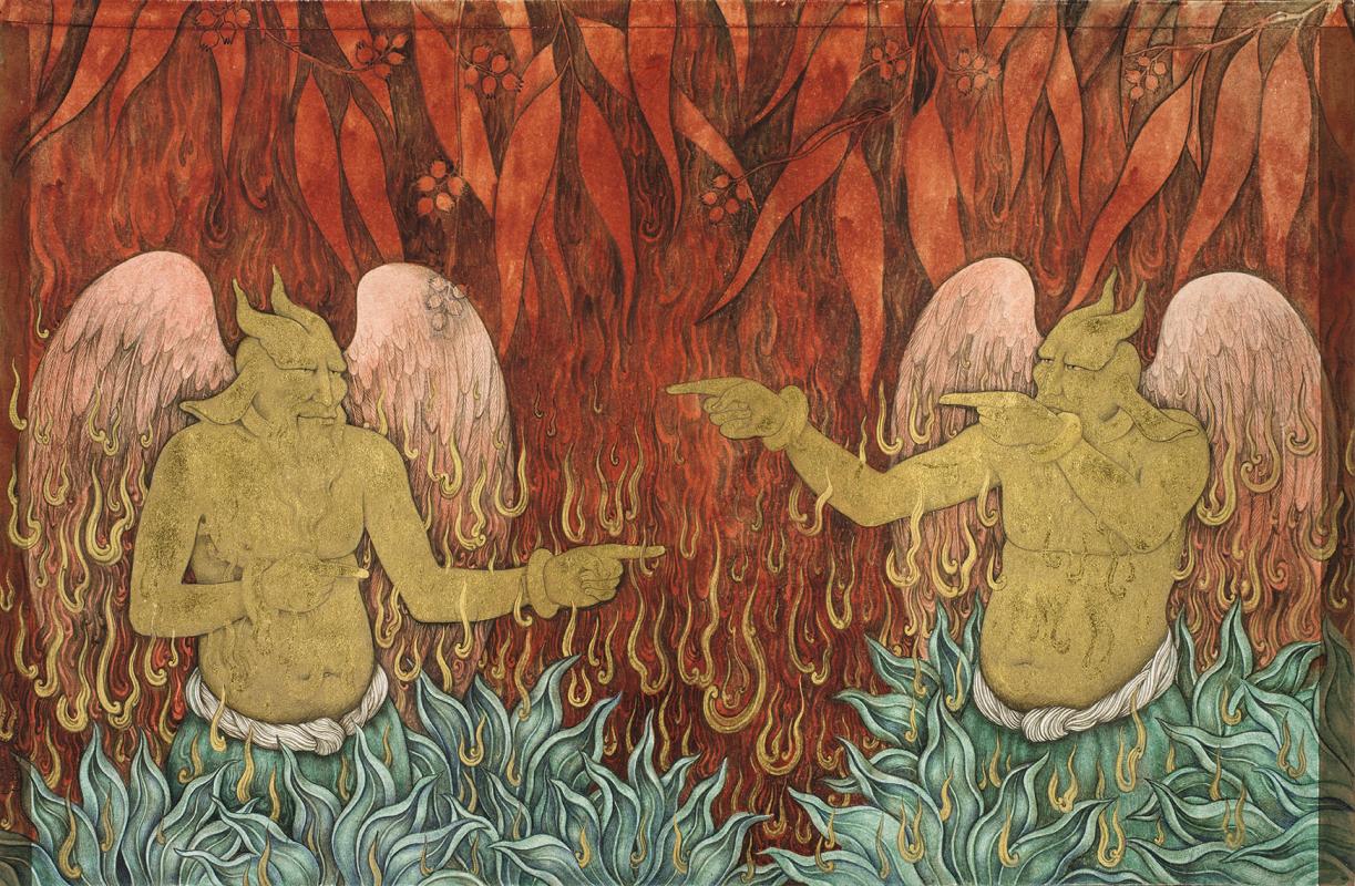 Gouache, watercolour and gold leaf on wasli paper