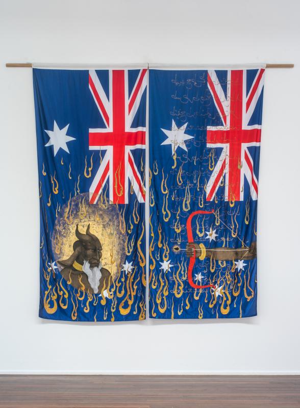 Gouache and gold leaf on nylon