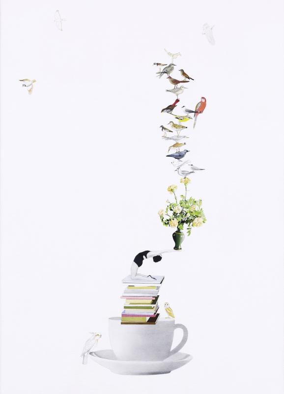 Acrylic, watercolour and pencil on poly-cotton