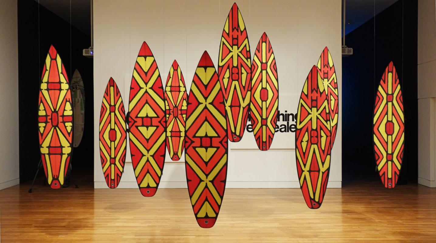 Video, 12 surfboards and 8 acrylic acrylic paintings on canvas