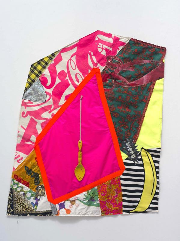 Cloth composition with Len Lye spoon (Jewellery banner), with Lisa Walker 2015