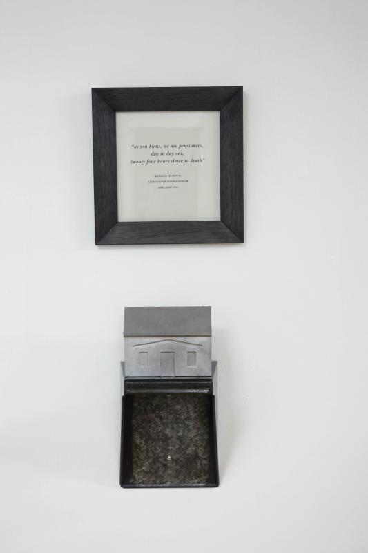 galvanized steel, acrylic paint, shellac, graphite, cast aluminium, laser print
