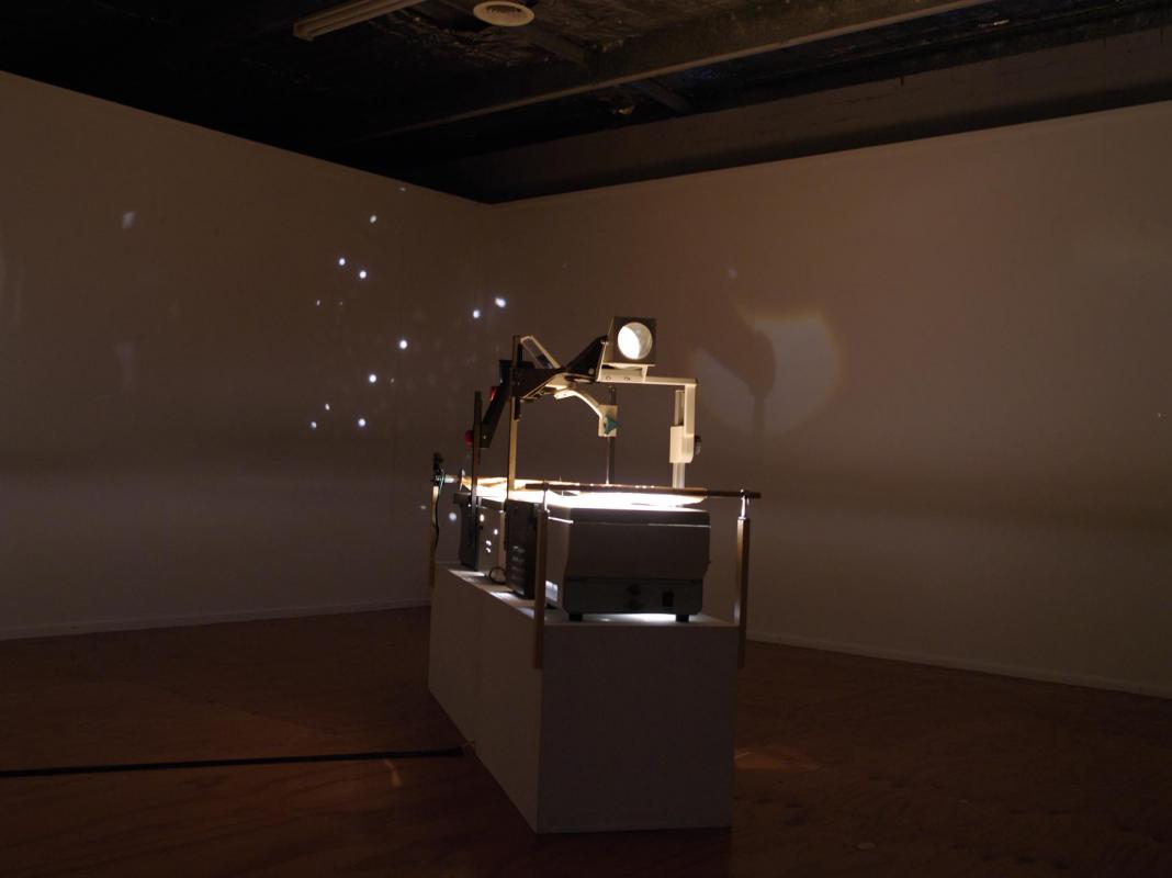 Overhead projections,paper, Toyota electric window motor, dowel, cardboard, wood, and tape.