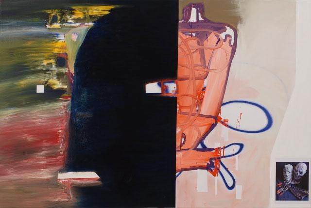 Oil, enamel and collage on linen