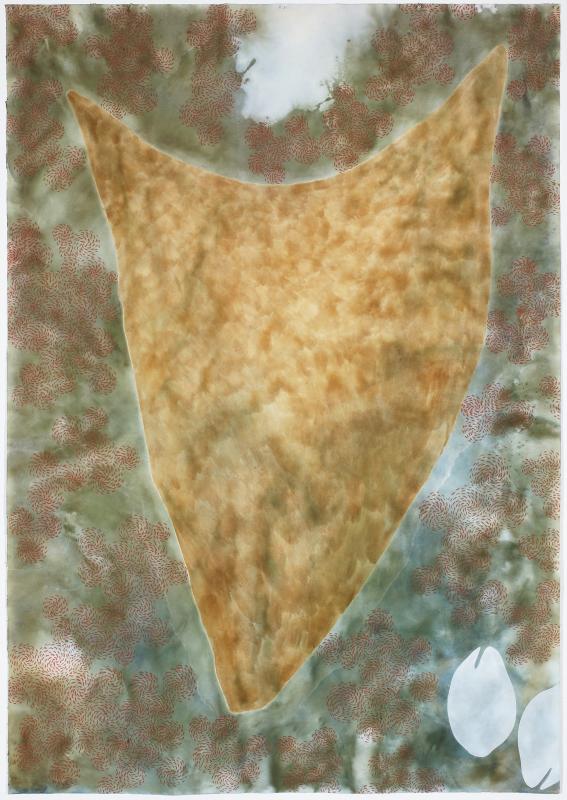 ochre, pigment, watercolour, gouache, pastel and acrylic on canvas