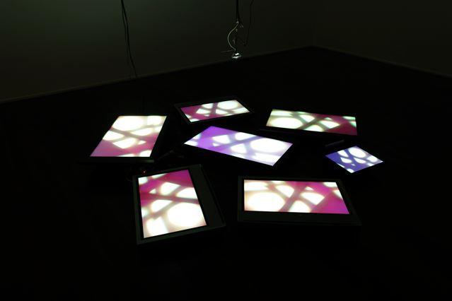 Fan, colour video camera, cut glass diamond, LCD screens
