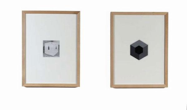 Salvaged sculpture drawing # 4 2009 & Greeting card painting # 6 2009