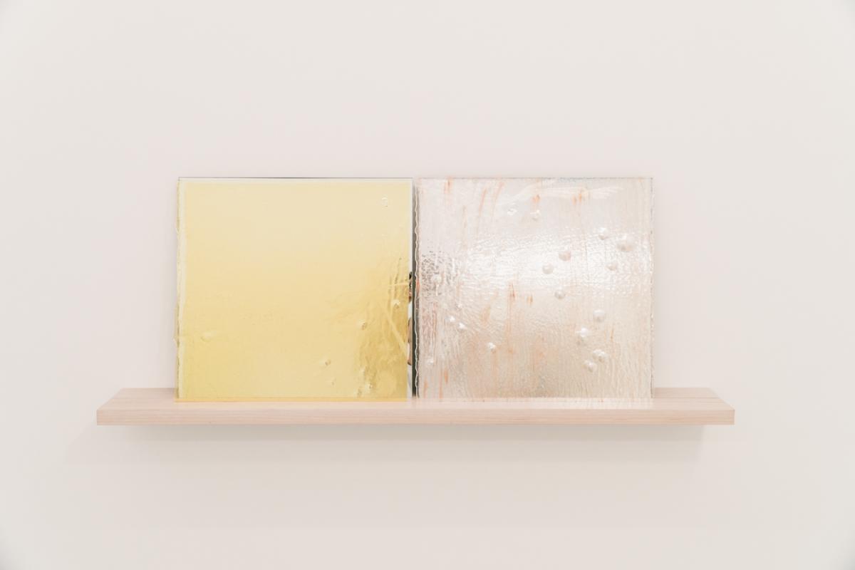 Engraved handmade Murano glass, mirror, engraved and mirrored glass, Victorian Ash wooden shelf