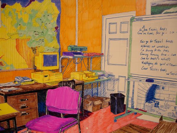 Electronic whiteboard, temporary and permanent texta markers, thermal paper print outs, photocopied enlargements