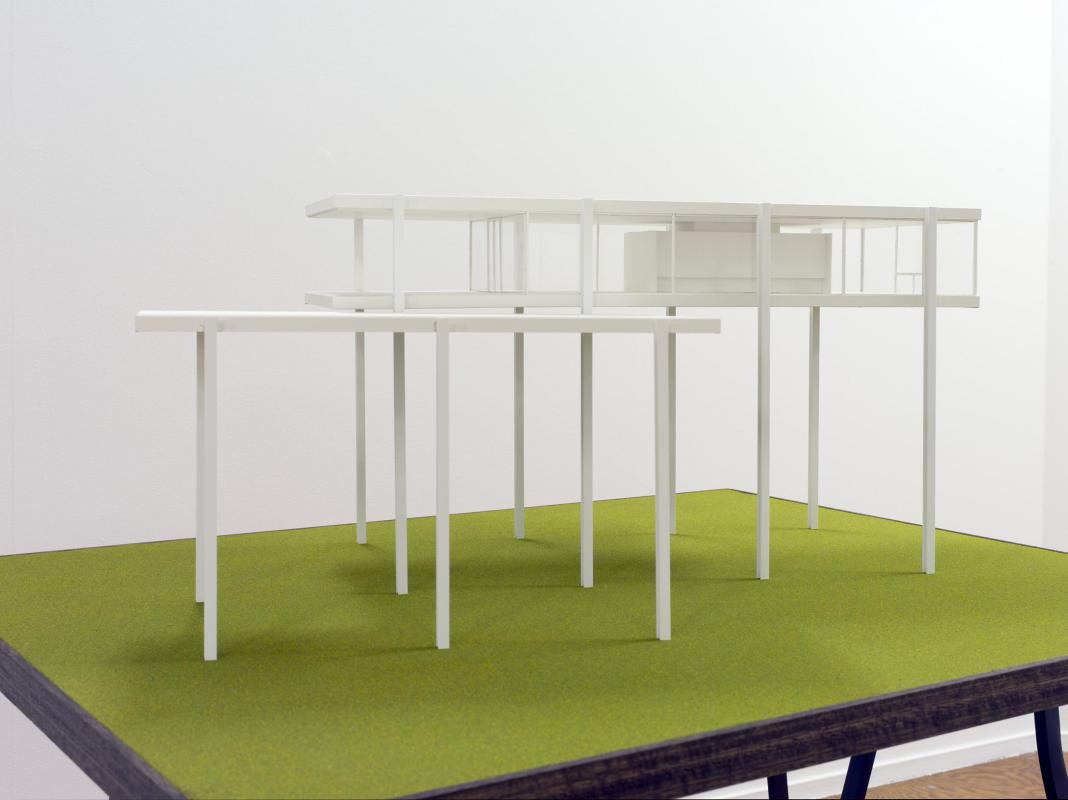 Timber, mount board, perspex, acrylic, and synthetic grass