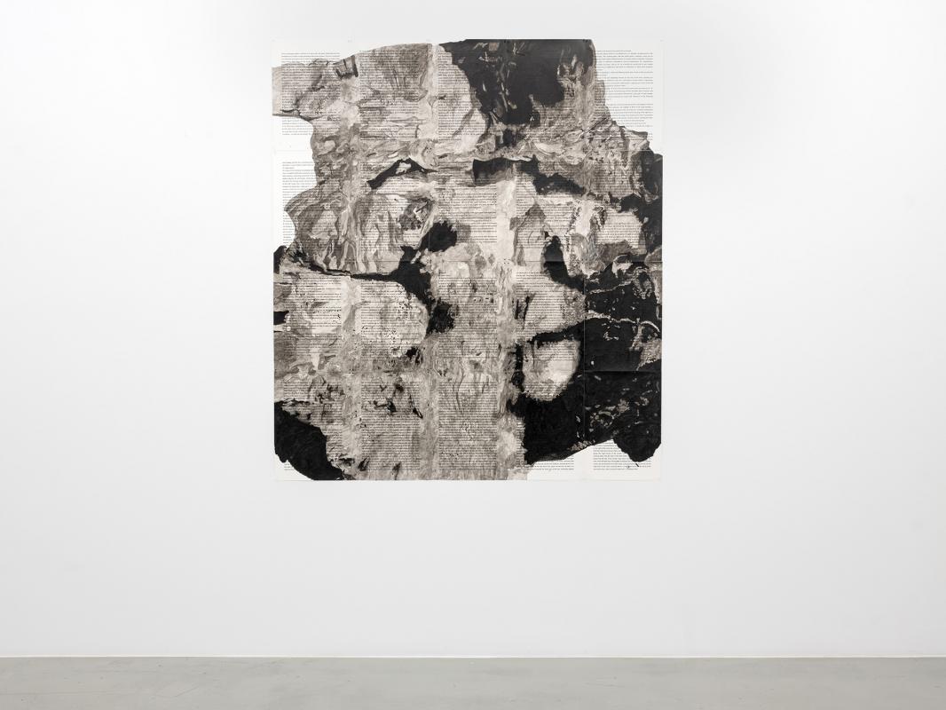 Indian ink over text on Teslin
