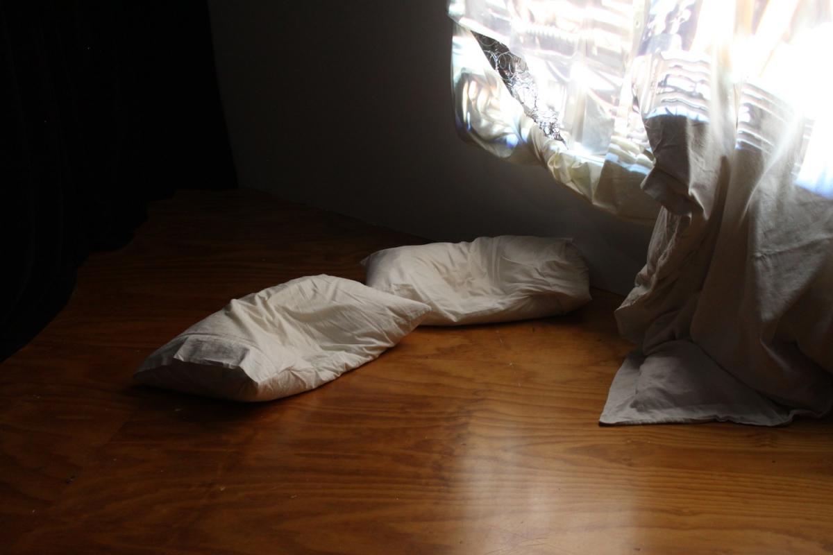 Mattress, bedding, video projection