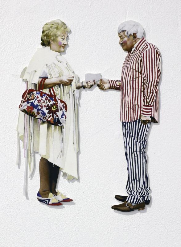 Acrylic and watercolour on paper and polyester