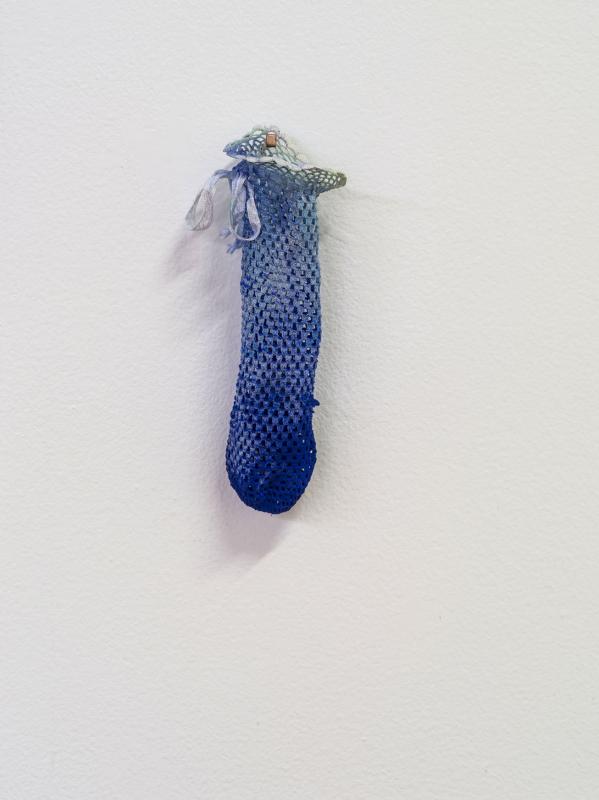 Cotton, silk ribbon, copper sulphate, Reckitts Blue, ochre,