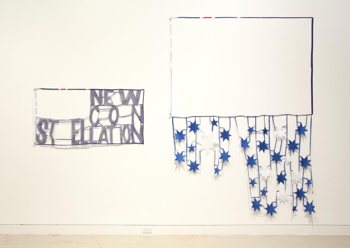 Reworked flag; cotton, metal