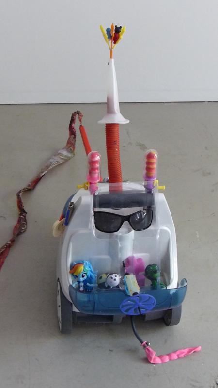 Found materials; plastic, polystyrene, metal