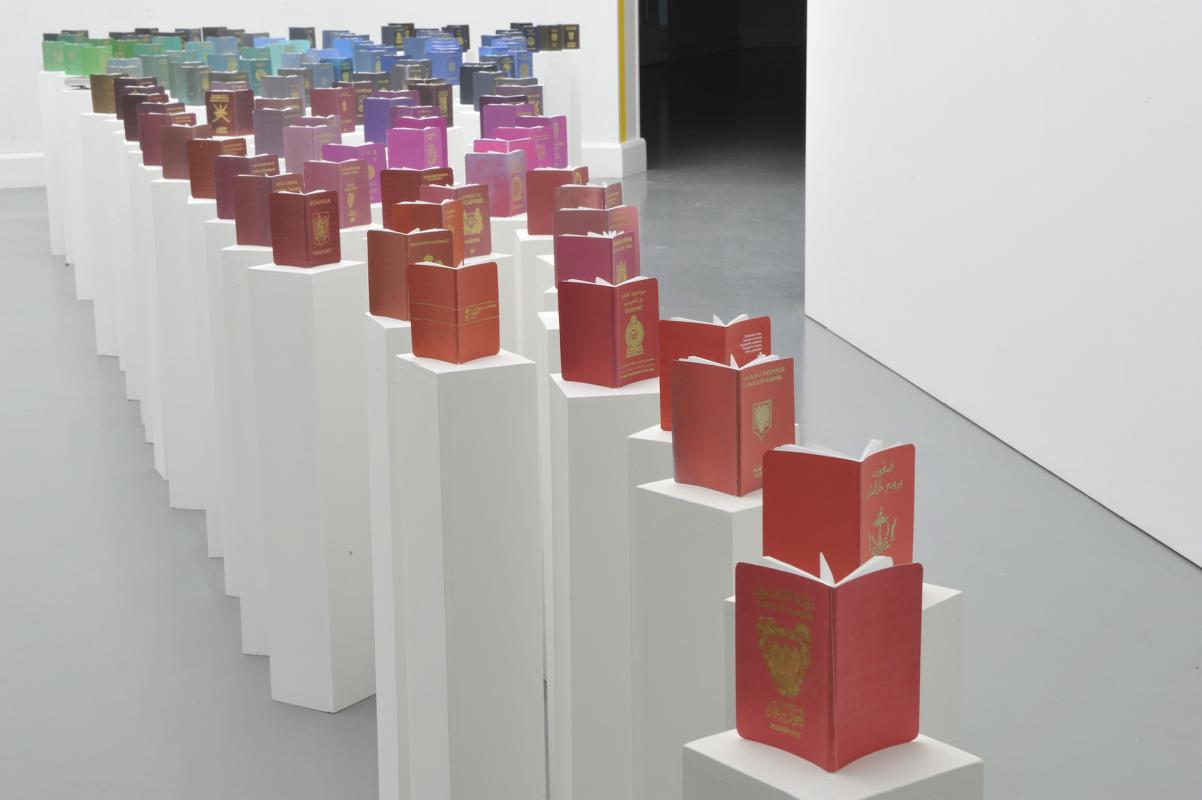 Installation with hand-made passports