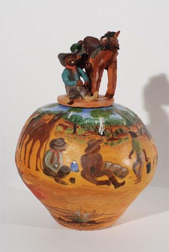 Hand built terracotta, underglaze decoration